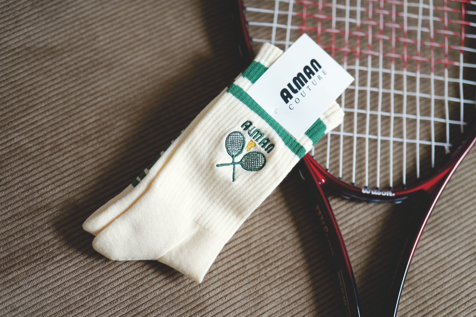 Modisches Design: Sportliche Retro Tennissocke mit subtilem Statement.